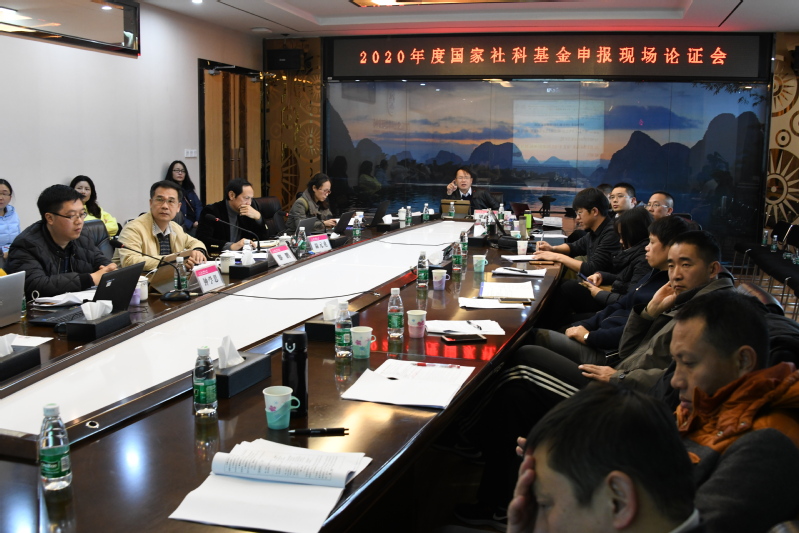 近日,我校在社科处/广西文科中心312会议室连续举办六场2020年国家社科基金项目申报现场论证会,拟申报2020年国家社科基金项目的120余名老师参加了会议。会议由社科处负责人主持。
