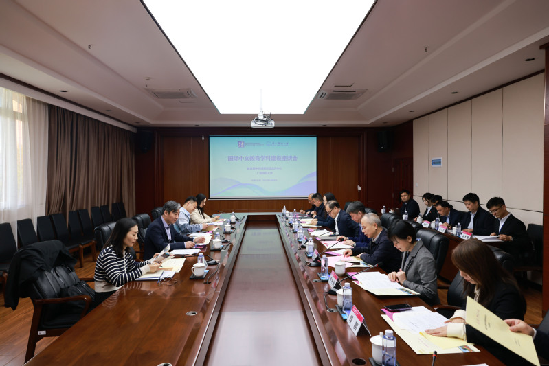 教育部中外语言交流合作中心发展规划处处长王甬、美大处处长袁丽、发展规划处高级项目官员李可欣,广西壮族自治区教育厅对外合作与交流处处长罗耀光陪同调研,我校校长办公室、党委教师工作部/人事处、研究生院、社会科学研究处、国际合作与交流处/国际文化教育学院和文学院等相关负责人参加座谈。