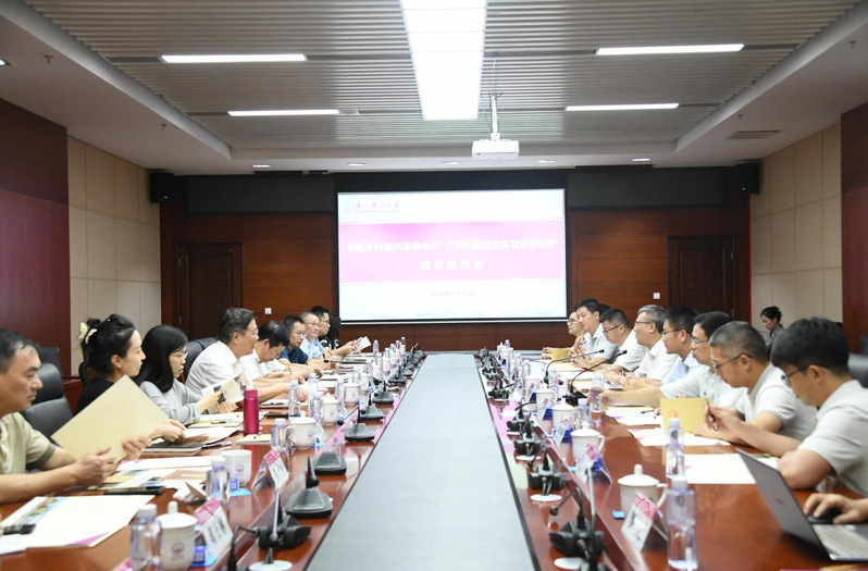 8月31日,农业农村部中国乡村振兴发展中心主任黄承伟一行到我校调研指导乡村振兴理论与政策研究工作。原国务院参事、友成企业家乡村发展基金会副理事长汤敏,自治区农业农村厅党组成员、乡村振兴外资项目发展中心主任邓妙宏,自治区乡村振兴外资中心项目管理处四级调研员李善鹏,桂林市农业农村局局长王松云,桂林市农业农村局党组副书记、副局长魏承林,桂林市农业农村局乡村建设科科长蒋士林,《社会科学家》杂志社副主编阳玉平,东华智慧城市(广西)技术有限公司副总经理罗卫坤受邀出席调研座谈会。我校党委书记、西部乡村振兴研究院院长贺祖斌会见了与会专家,校党委常委、副校长、西部乡村振兴研究院执行副院长宋树祥出席座谈会。我校社会科学研究处、经济管理学院、创新创业学院、西部乡村振兴研究院、桂林发展研究院等单位相关负责人,以及西部乡村振兴研究院科研骨干参加座谈。座谈会由社会科学研究处处长肖富群主持。