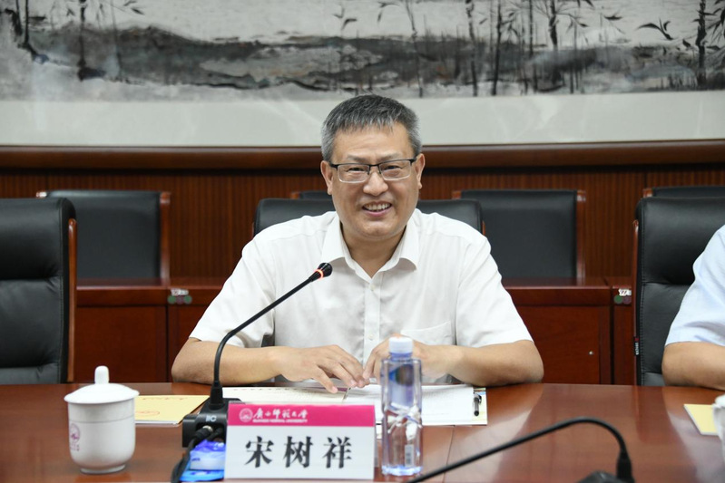 宋树祥副校长代表学校对黄承伟主任和汤敏副理事长一行到我校调研交流表示热烈欢迎,并从历史沿革、办学规模、内涵发展以及办学特色等方面介绍了近年来我校改革发展的基本情况。他指出,我校在服务乡村振兴战略中注重突出特色,依托西部乡村振兴研究院等特色高端智库,主动对接国家、自治区、桂林市的重大战略、重大需求,围绕产业兴旺、生态宜居、乡风文明、治理有效、生活富裕等重大、热点、前瞻性问题开展有组织攻关创新。他表示,我校将主动担当作为,加快构建重大需求导向、项目任务带动、平台资源共享、学科优势互补的高校乡村振兴科研服务机制,全面提升高校乡村振兴领域人才培养、科学研究、社会服务、文化传承创新和国际交流合作能力。