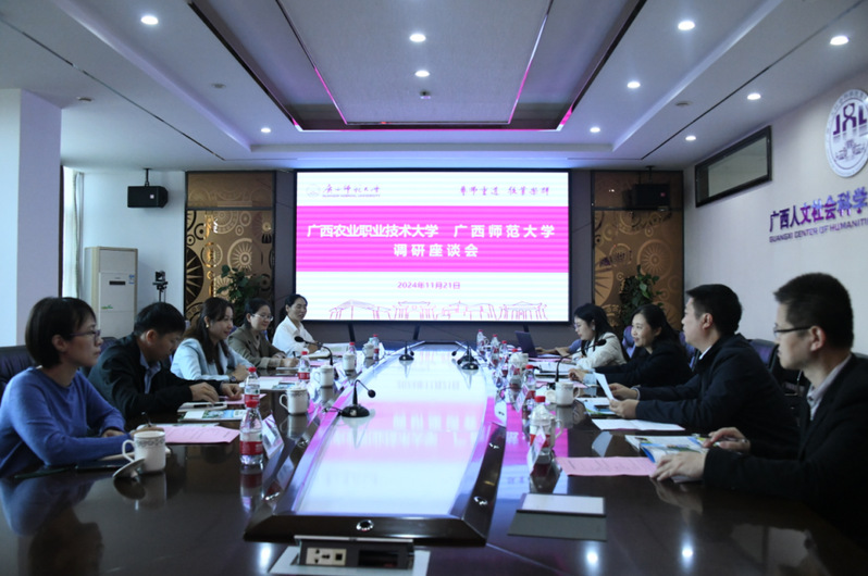11月21日,广西农业职业技术大学科研处处长易显凤一行5人来我校调研交流。我校科技处、社科处/广西文科中心负责人及相关科室人员参加座谈。