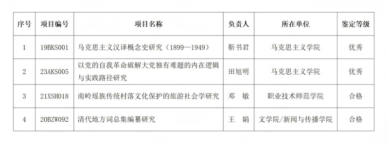 2025年7月~8月,我校有4项国家社科基金项目通过鉴定结项,获准结项。具体情况如下: