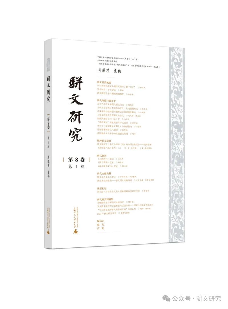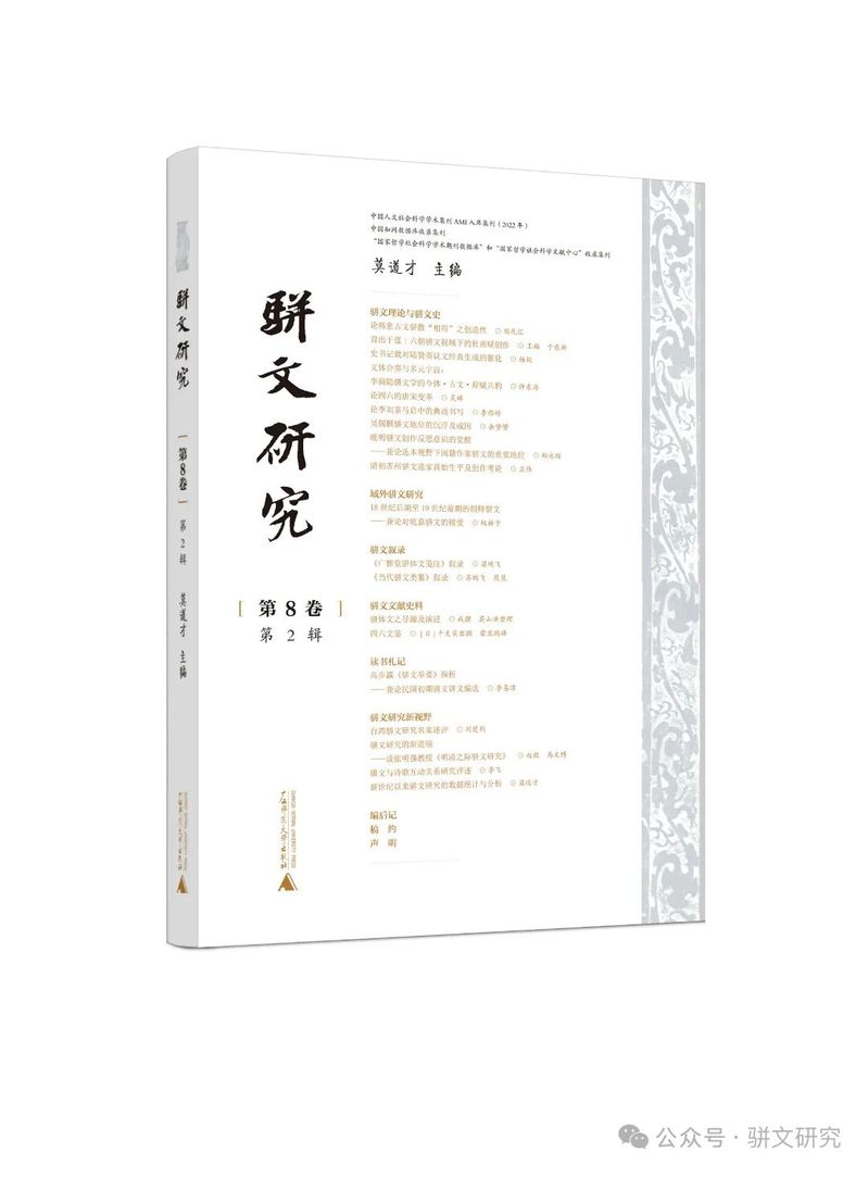 8月4日,《骈文研究》第8卷由广西师范大学出版社出版。