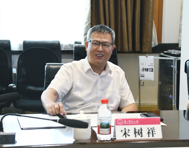 宋树祥副校长代表学校对邢广程研究员到校调研指导表示热烈欢迎,并从历史沿革、办学规模、内涵发展以及办学特色等方面介绍了近年来学校改革发展的基本情况。他指出,结合当前国家和区域发展战略需要以及学校在边疆史、边疆考古、民族关系与共同体意识、边疆治理理论与实践、边疆安全与地缘政治、边疆社会与文化研究、边疆经济发展与乡村振兴等特色研究领域的深厚积累和创新优势,学校成为引领广西边疆史研究的旗帜,在边疆史研究领域逐步形成“立足华南、辐射东南亚”的学术特色,成为广西边疆史研究的重镇。他表示,我校将充分发挥区位优势、学科基础及研究特色,依托国家民委中华民族共同体研究基地—中华民族共同体研究院、华南边疆与周边国家研究中心、华南边疆考古研究中心等科研创新基地和智库平台,主动服务国家战略和区域发展,加强边疆史和边疆治理相关的多学科研究,深化边疆治理重大理论和现实问题研究,积极为加快建构中国自主的边疆学知识体系、深入推动边疆地区高质量发展贡献力量出谋献策。