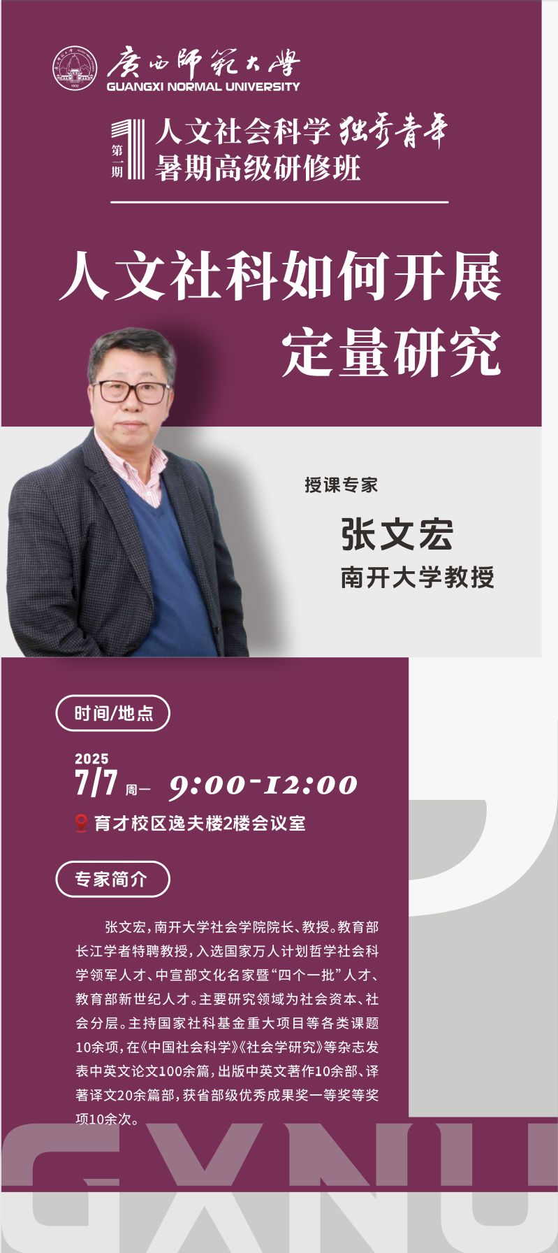 【学术活动预告】7月7日上午|张文宏:人文社科如何开展定量研究