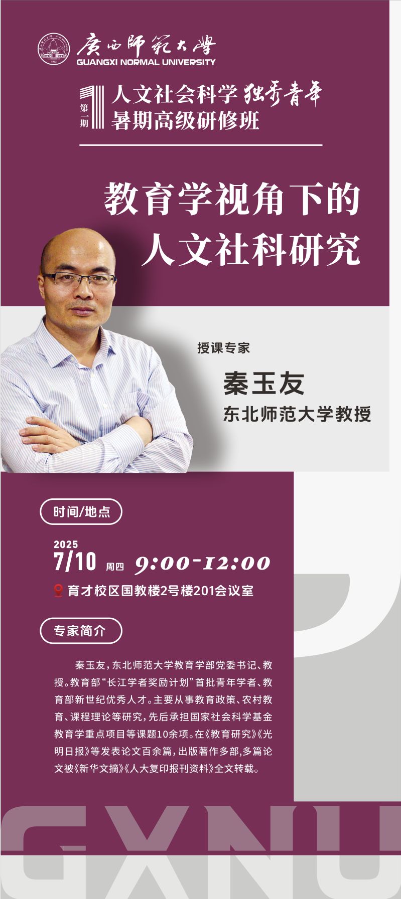 【学术活动预告】7月10日上午|秦玉友:教育学视角下的人文社科研究