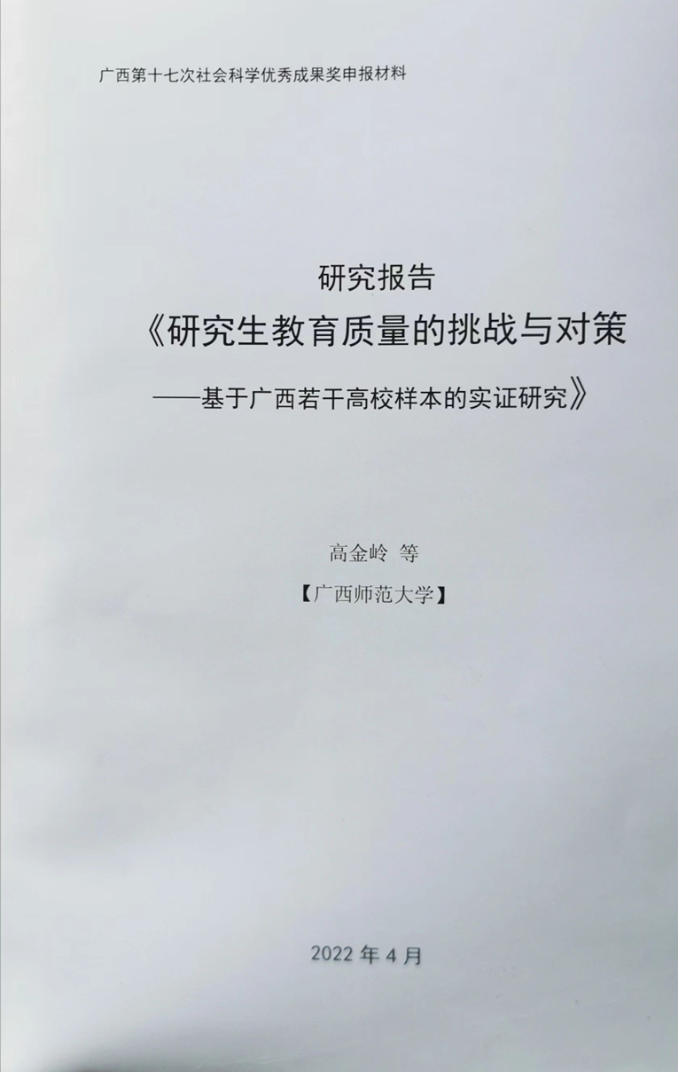 成果名称:研究生教育质量的挑战与对策——基于广西若干高校样本的实证研究