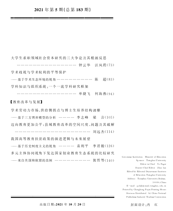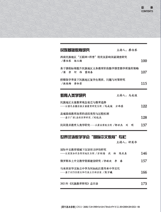 系列论文:分别于《清华大学教育研究》2021年第5期发表,《民族教育研究》2021年第6期发表,《教育发展研究》2021年第10期发表。