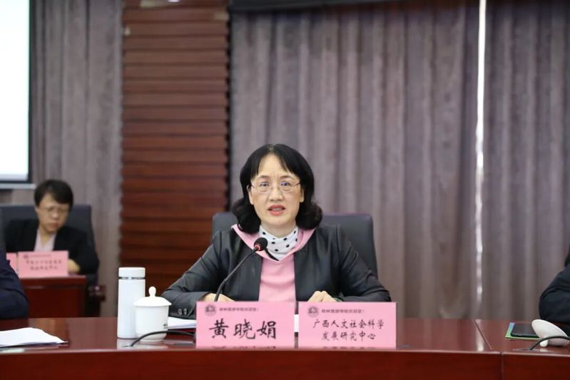 黄晓娟代表学校及广西文科中心对参加本次会议的领导、专家学者的到来表示热烈欢迎。她指出,自治区教育厅依托广西文科中心构建形成全区重点研究基地协作机制,更好服务各基地的高质量内涵式发展;在自治区教育厅的精心指导和大力支持下,各重点研究基地聚焦“四个面向”提升科研创新能力,系统推进有组织科研的科研体制机制改革,在助力建设学术高地和学科高峰、聚集和培养优秀学术人才、产出高水平创新成果、形成学术交流开放平台、带动高校哲学社会科学发展创新等方面发挥着重要作用。