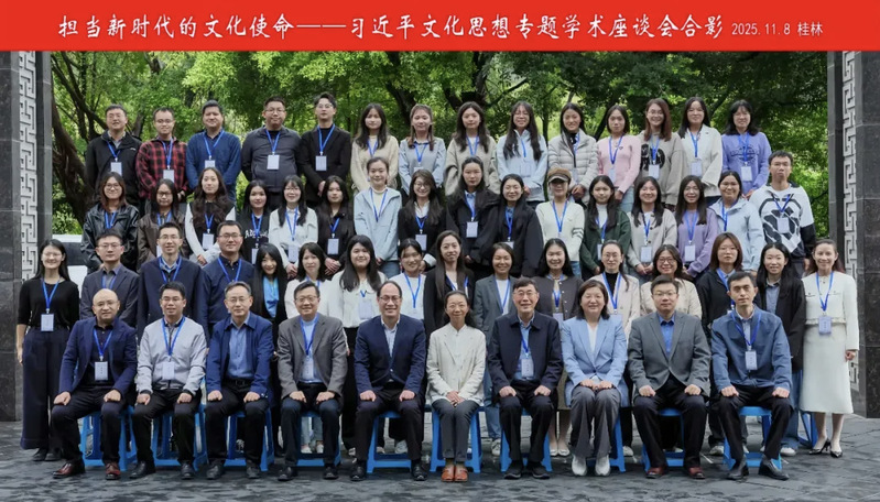 为深入贯彻落实党的二十届四中全会精神,深入学习贯彻习近平文化思想,总结中国共产党领导文化建设的伟大成就和历史经验,探索新时代新征程中国特色社会主义文化进一步发展的规律和路径,《党的文献》编辑部与广西高校人文社科重点研究基地-马克思主义理论与区域实践研究中心、我校马克思主义学院于11月8日在桂林联合举办“担当新时代的文化使命——习近平文化思想”专题学术座谈会。