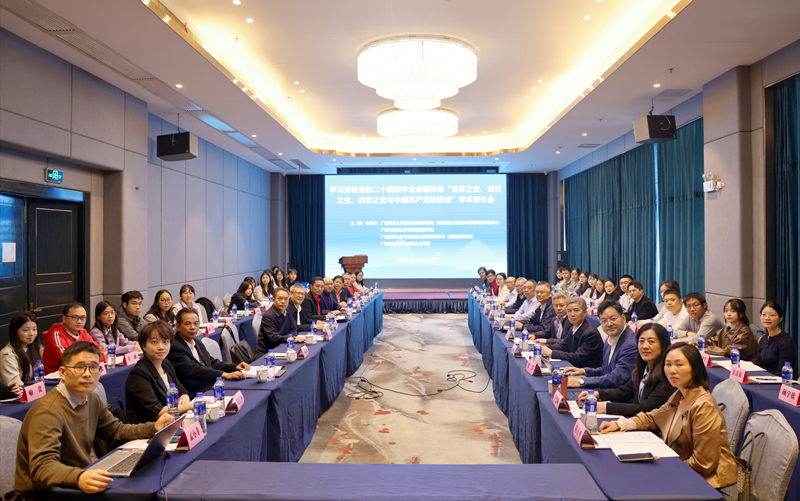 党的二十届四中全会是在向第二个百年奋斗目标进军的新征程上举行的一次十分重要的会议。为贯彻落实党的二十届四中全会精神,学习领会习近平总书记在党的二十届四中全会上的重要讲话精神,聚焦当前的世界之变、时代之变和历史之变,全球政治格局的演变和世界社会主义的未来,共同探讨中国共产党治国理政的经验和实践特征。由广西高校人文社科重点研究基地(马克思主义理论与区域实践研究中心)、广西马克思主义学院联盟秘书处、广西师范大学马克思主义理论高峰学科(党的建设方向)、我校马克思主义学院主办的“学习贯彻党的二十届四中全会精神暨“世界之变、时代之变、历史之变与中国共产党的治理”学术研讨会于11月1日在桂林举行。