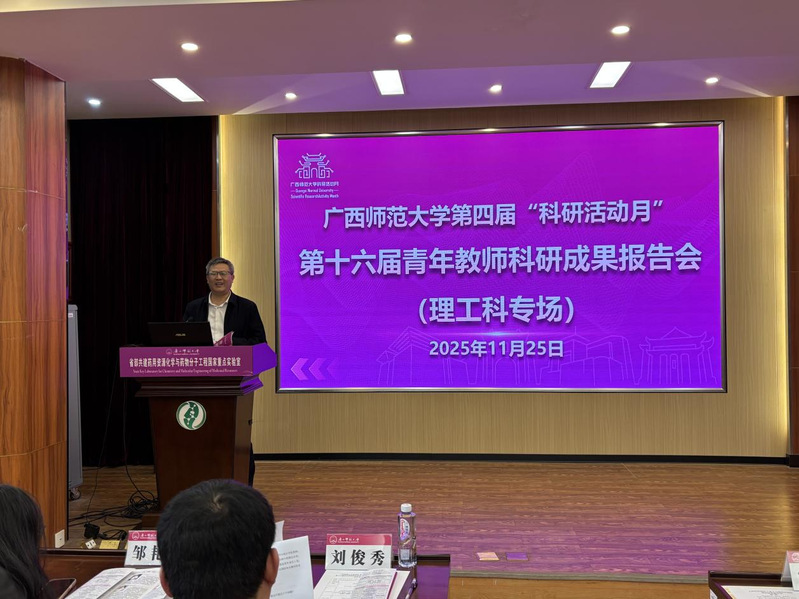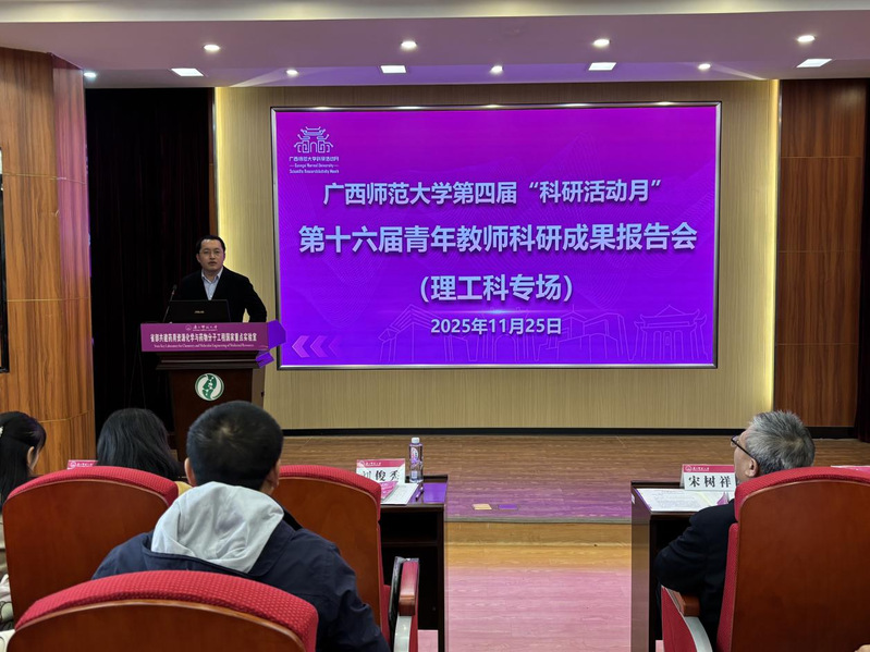 为深入推介青年教师的前沿科研成果和优秀创新作品,有效激发青年教师的科研活力和创新潜能,促进青年教师的实质性学术交流与科研合作,11月25日下午,校科协、校社科联共同举办了广西师范大学第四届“科研活动月”系列活动之第十六届青年教师科研成果报告会。此次报告会分设文科专场和理工科专场两个会场,分别在育才校区图书馆一楼报告厅和国家重点实验室2号楼2101学术报告厅举办。我校党委常委、副校长宋树祥,以及来自各学院(部)分管科研工作的领导、青年教师及研究生代表参加了报告会。