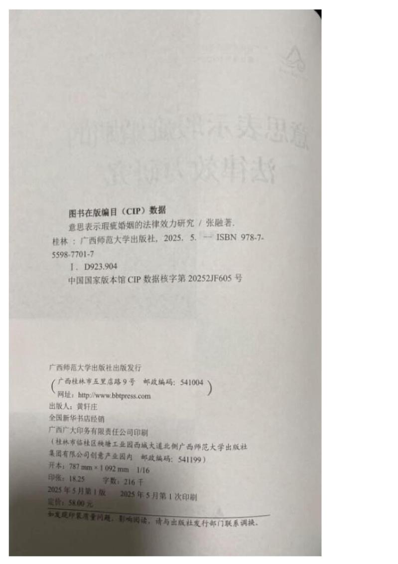 【成果名称(学术著作)】意思表示瑕疵婚姻的法律效力研究