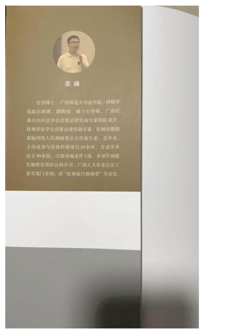 张融(1990-),男,广西浦北人,法学博士,广西师范大学法学院副教授,硕士生导师,研究方向为民法;主持完成各级科研课题4项;出版著作2部、教材2部,在《科学与社会》《中国政法大学学报》等期刊发表论文30余篇;咨询报告曾被教育部社科司、广西人大常委会法工委等部门采纳;获得广西社科优秀成果三等奖2项(成员),桂林市社科优秀成果二等奖1项(主持),自治区教学成果一等奖1项(成员);曾获桂林银行教师奖、广西师范大学优秀共产党员等荣誉,兼任广西法学会首席法律咨询专家团队成员、桂林市法治决策咨询专家库人员、桂林市法学会首席法律咨询专家、桂林市婚姻家庭纠纷调解咨询专家等。