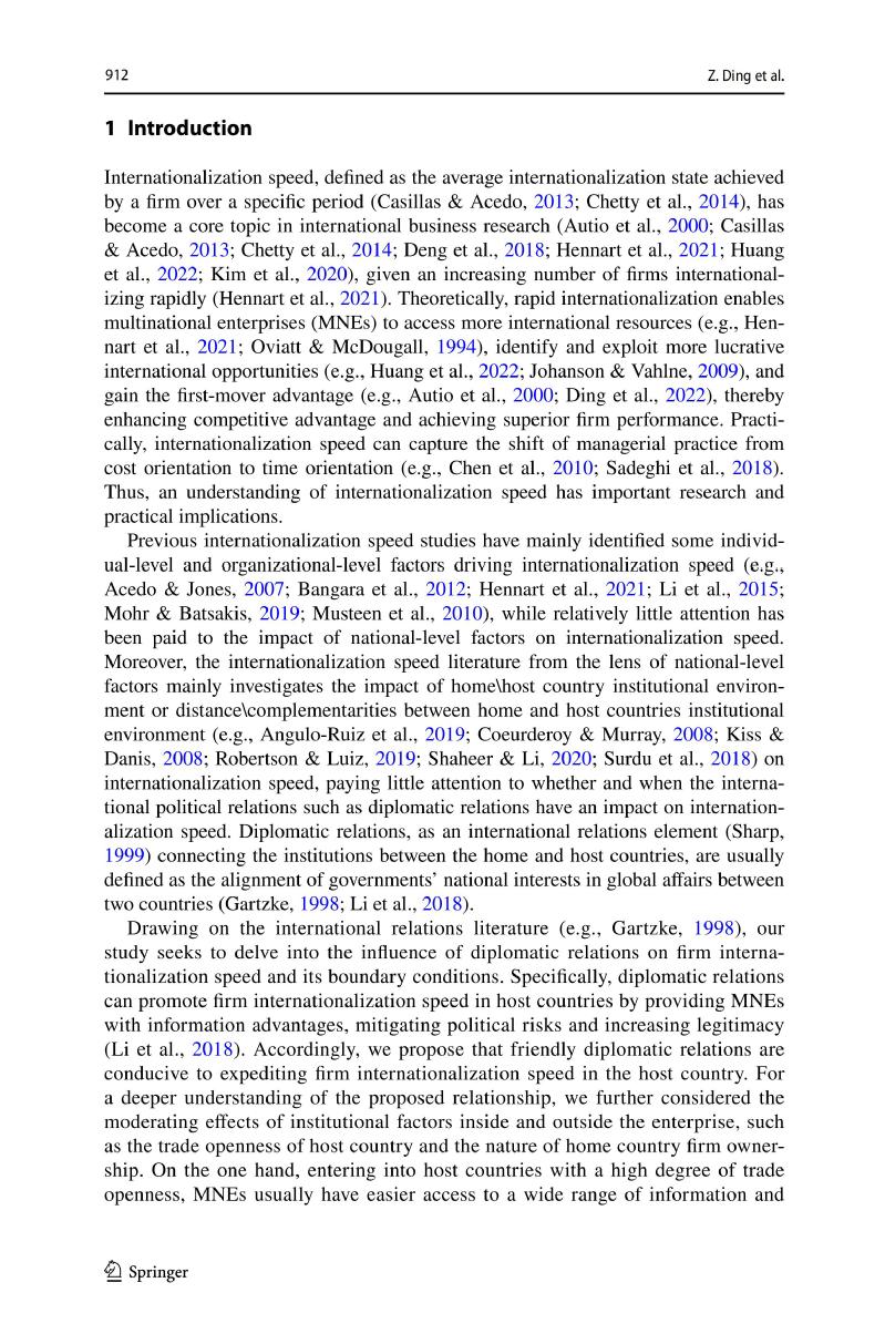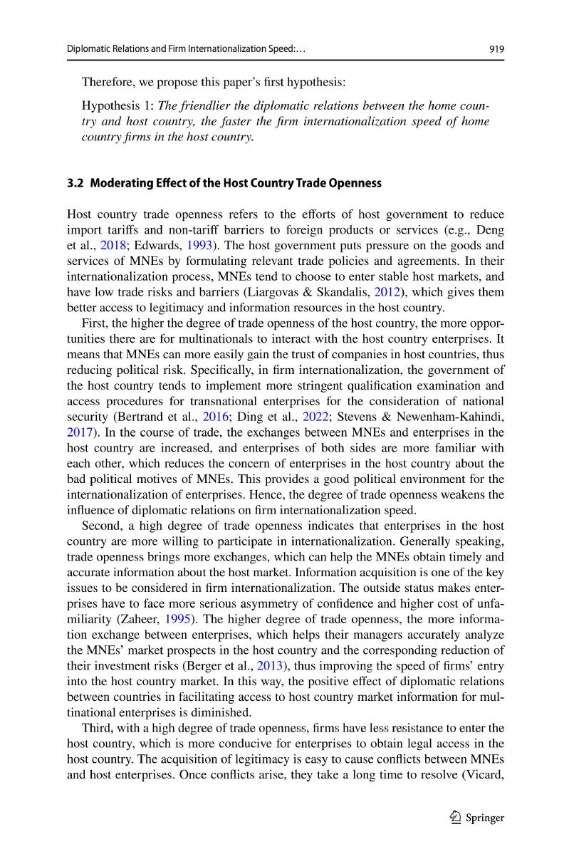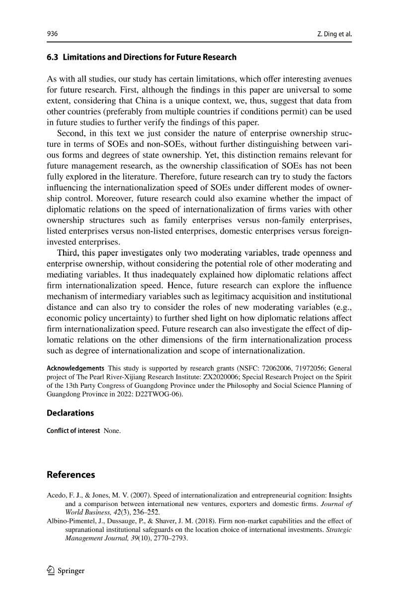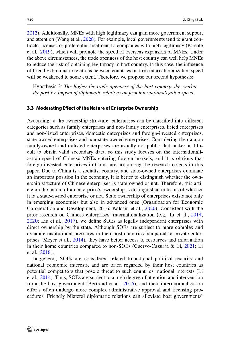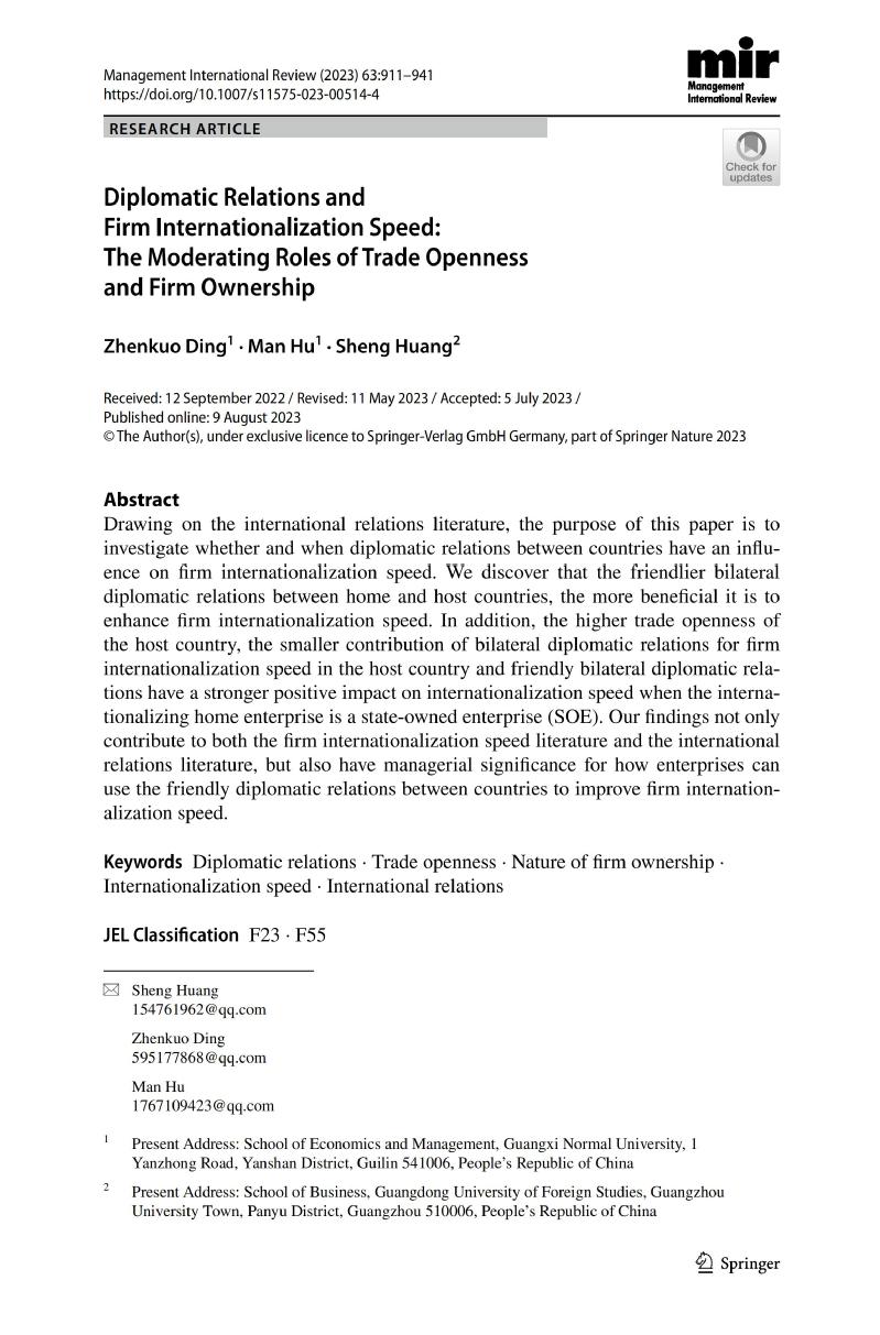 成果名称(学术论文)】Diplomatic Relations and Firm Internationalization Speed:The Moderating Roles of Trade Openness and Firm Ownership(外交关系与企业国际化速度:贸易开放程度与企业所有权性质的调节效应)