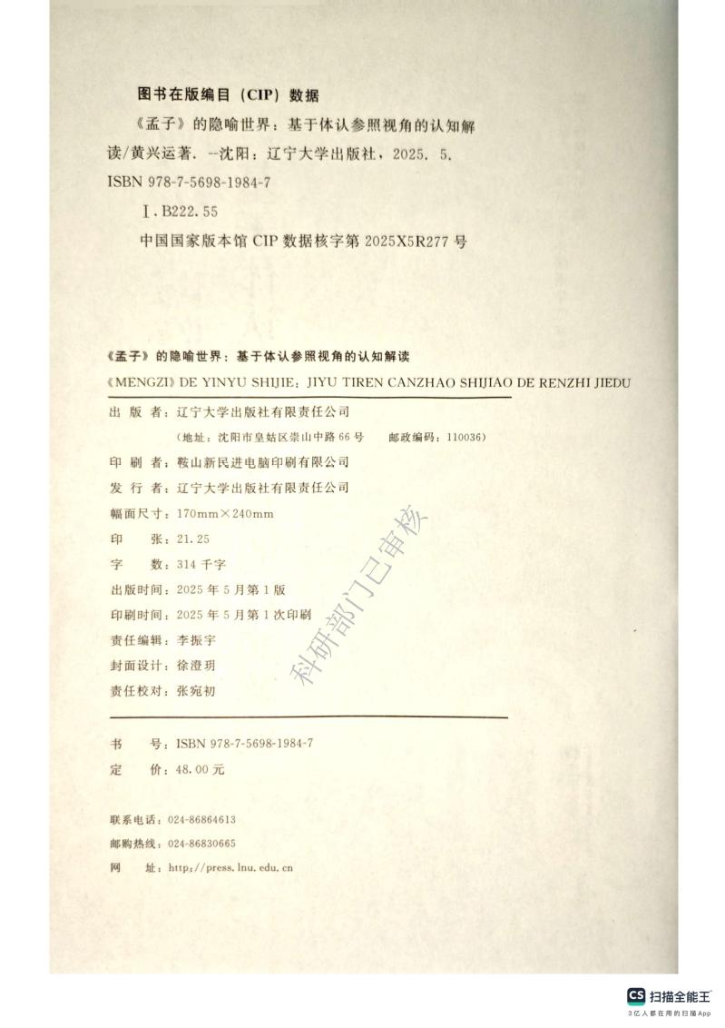 【科研活动月】青年教师科研成果展示(八) | 《〈孟子〉的隐喻世界:基于体认参照视角的认知解读》