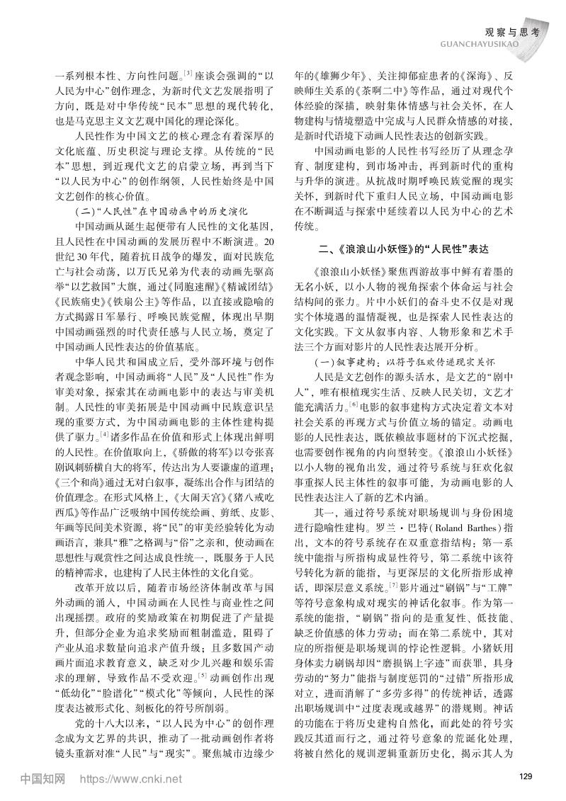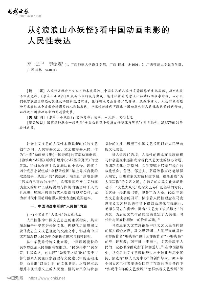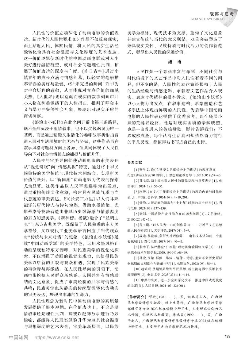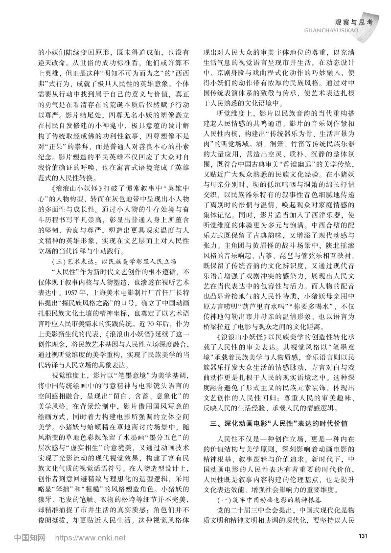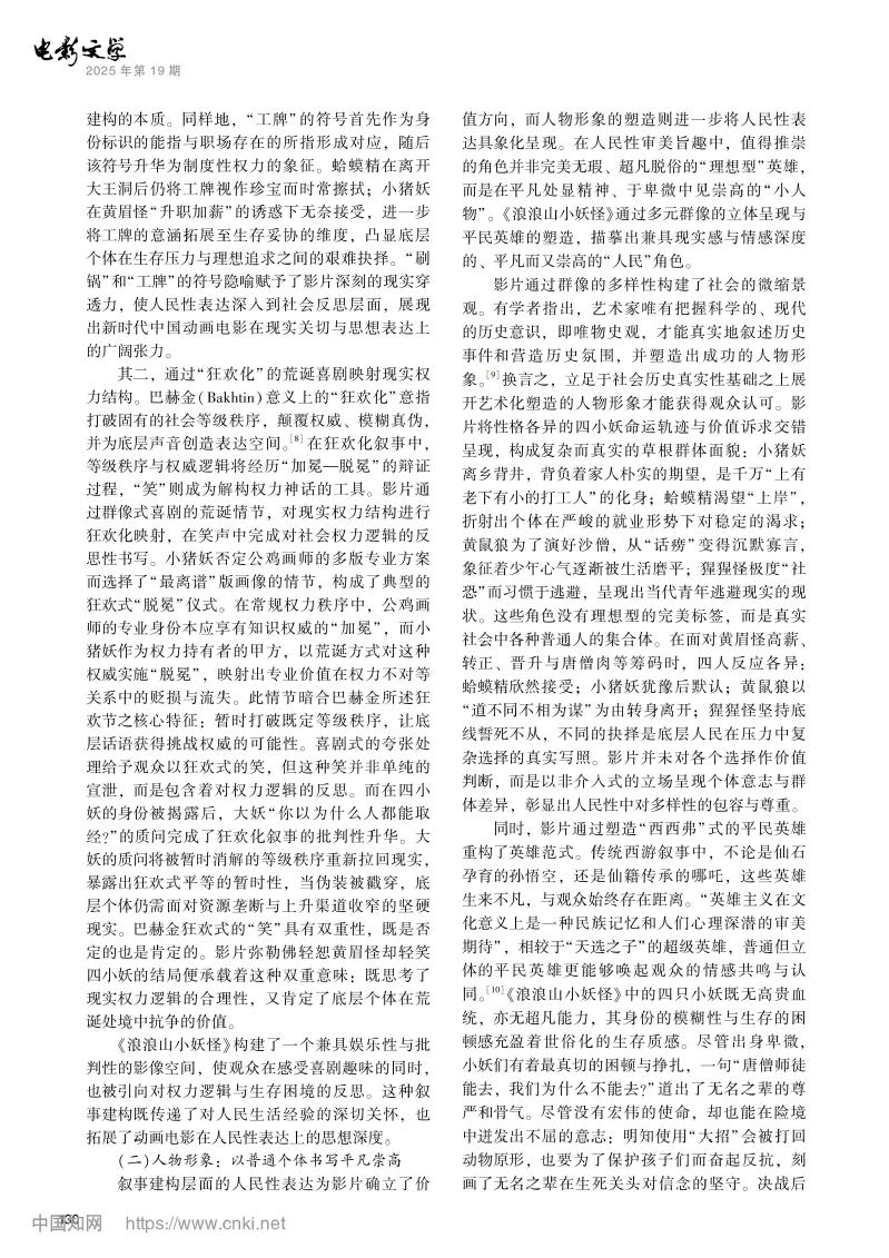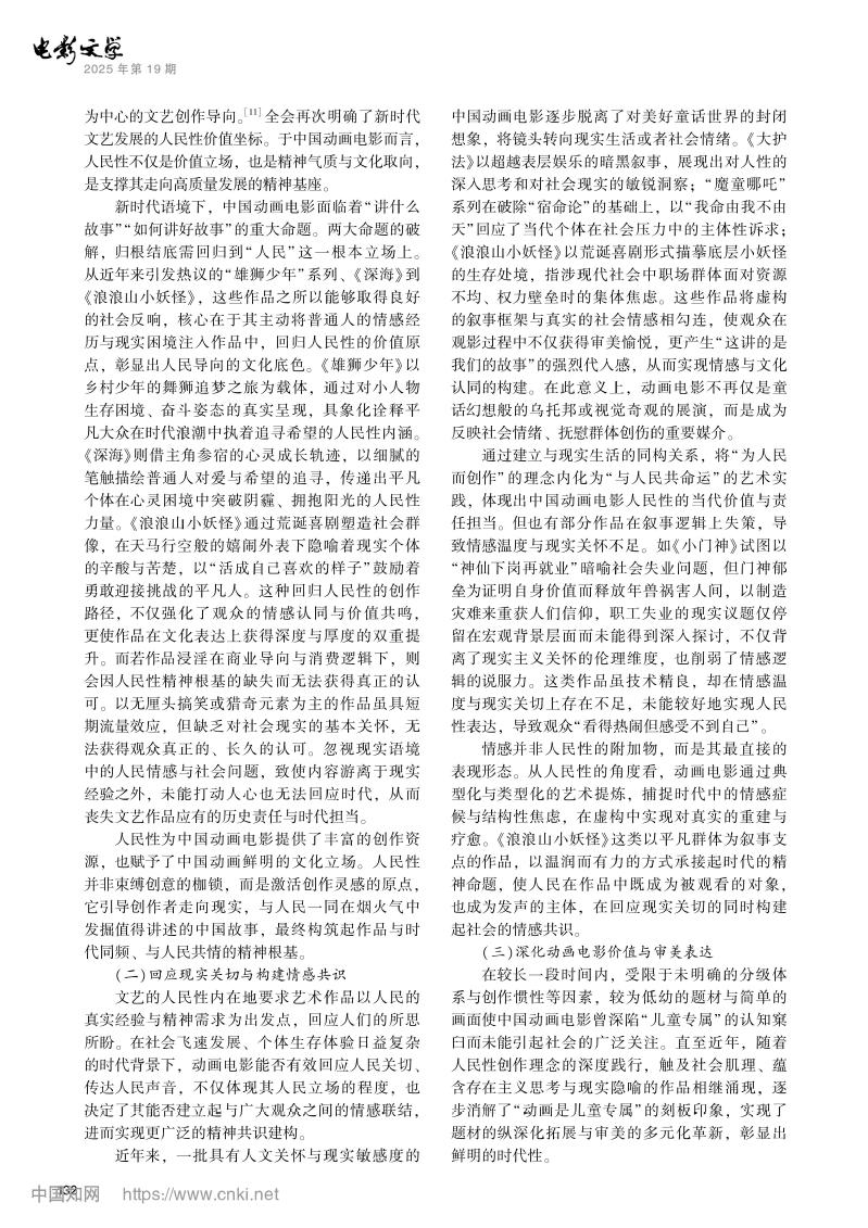 论文三:《从〈浪浪山小妖怪〉看中国动画电影的人民性表达》通过分析该片对底层角色的现实观照与民族化艺术表达,指出“人民性”贯穿中国动画发展历程,提出动画应回归现实关怀,塑造平民英雄,以民族审美传递时代精神,筑牢文化根基。