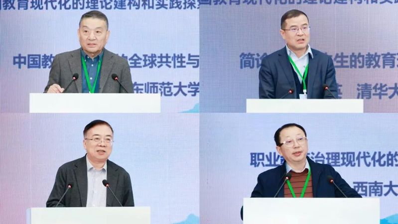 嘉宾对话环节,陕西师范大学郝文武教授、我校王枬教授、安徽师范大学阮成武教授、天津教育科学研究院王光明教授、浙江师范大学费蔚教授等,围绕“中国教育现代化的时代议题、问题与破题”展开深度对话。圆桌论坛环节,复旦大学徐冬青副研究员、北京师范大学余清臣教授、华东师范大学程亮教授、中央民族大学袁梅教授、南宁师范大学王屹教授、我校袁磊教授、我校杨茂庆教授等,分别就“治理效能与教育现代化底层逻辑”“教育创新机制建设”“教育公平的规范结构与指标建构”“中国式现代化的价值观教育根基”“乡村小规模学校赋能边疆治理”“职业教育国际化创新路径”“人工智能时代的教育伦理”“教育现代化的国际经验与本土转化”等议题进行专题发言与互动研讨。我校马焕灵教授、闫若婻教授分别担任嘉宾对话及圆桌论坛主持人。