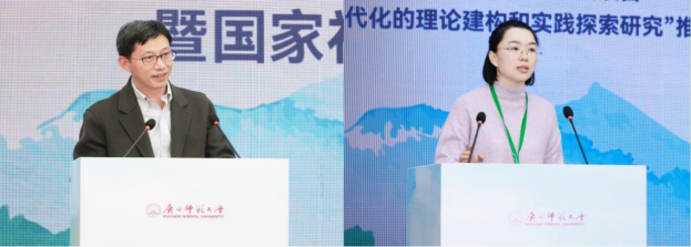 主旨报告环节,华东师范大学丁钢教授探讨了“中国教育现代化的全球共性与自主特征”,清华大学石中英教授阐释了“顾明远先生的教育现代化思想”,首都师范大学田慧生教授就“中国教育现代化若干问题”展开分析,西南大学朱德全教授论述了“职业教育治理现代化的中国道路”,华东师范大学李政涛教授以“共生教育与第四自然”为题拓展了教育现代化研究的新视野,我校孙杰远教授阐述了“中国教育现代化的临界与超越”。杭州师范大学王鉴教授、华中师范大学郭元祥教授、华东师范大学徐国庆教授、首都师范大学高书国教授、华东师范大学黄书光教授等,分别从中国教育现代化的“实践路径”“语言之途”“产教融合”“‘十五五’目标构想”“历史选择”等角度做了专题报告。北京师范大学余清臣教授、我校王彦教授、华东师范大学程亮教授、中央民族大学袁梅教授分别担任主旨报告环节主持人。