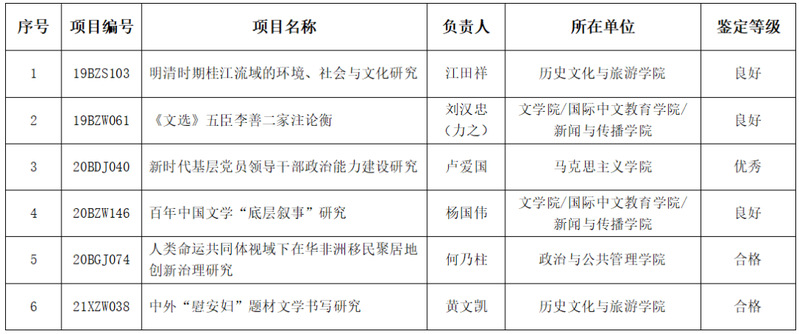 2026年1月,我校有6项国家社科基金年度项目通过结题鉴定获准结项。
