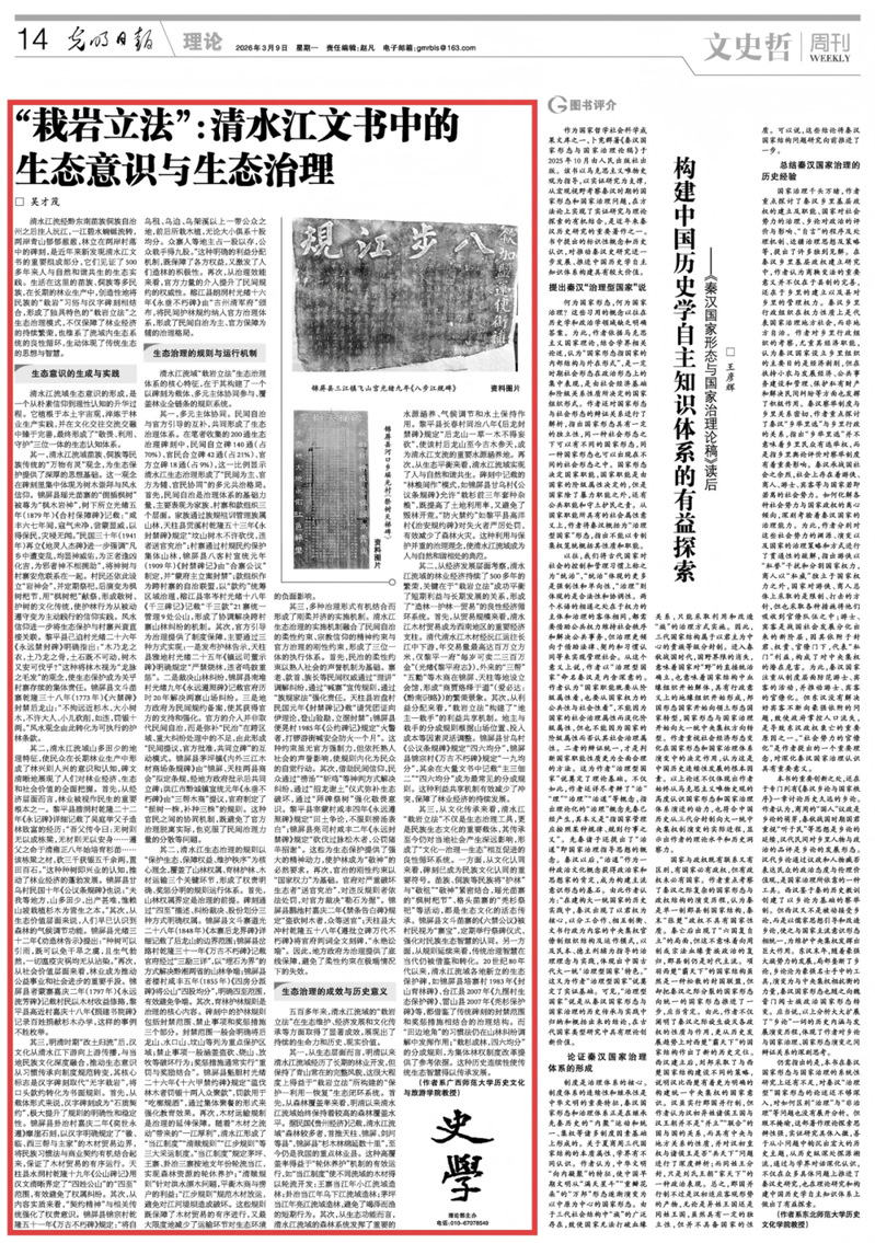 新著速递|吴才茂:“栽岩立法”:清水江文书中的生态意识与生态治理(《光明日报》2026年03月09日第14版理论版)